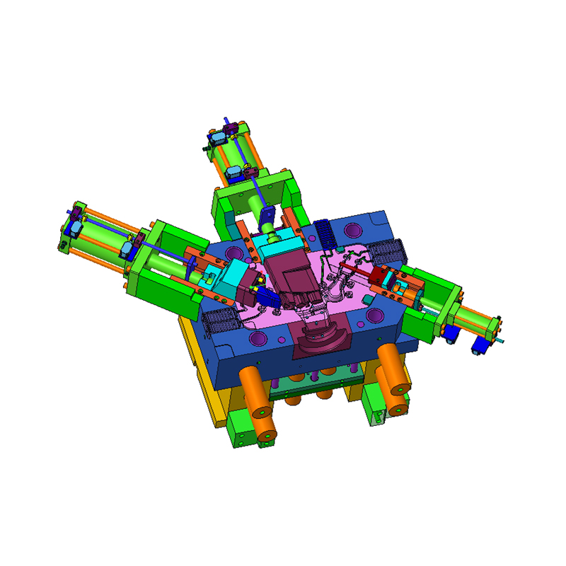 يركز تصميم قالب ذراع دعم سبائك الألومنيوم على الثبات العالي والعمر الطويل. يصل وزن القالب إلى 4665 كجم، وهو ما يمكنه أن يتحمل بشكل فعال الضغط الهائل المتولد أثناء الصب بالضغط العالي ويضمن التشغيل المستقر على المدى الطويل تحت درجة الحرارة العالية وبيئة الضغط العالي. الهيكل المستقر والمواد المتينة تجعل القالب ليس من السهل أن يتشوه أو يتآكل أثناء الاستخدام طويل الأمد، مما يقلل من تكرار الصيانة والاستبدال ويقلل وقت التوقف عن العمل. يضمن التصميم عالي الثبات أن القالب يحافظ دائمًا على الدقة العالية للمسبوكات في الإنتاج واسع النطاق، مما يلبي احتياجات الإنتاج الصناعي من الصب المستمر والفعال.